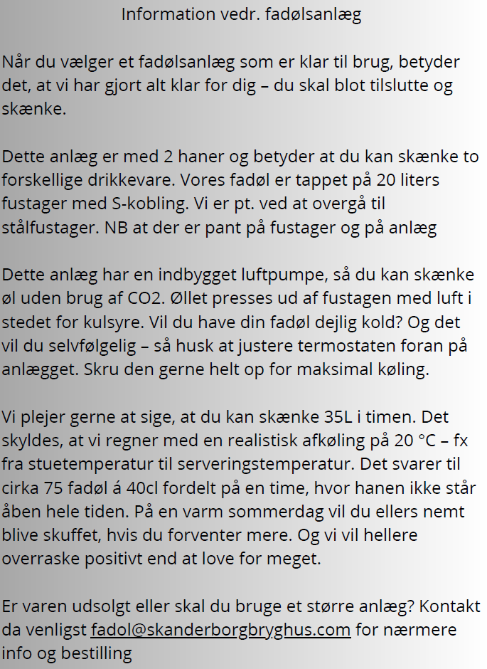 Uge 8 Leje af fadølsanlæg incl. 2 fustager